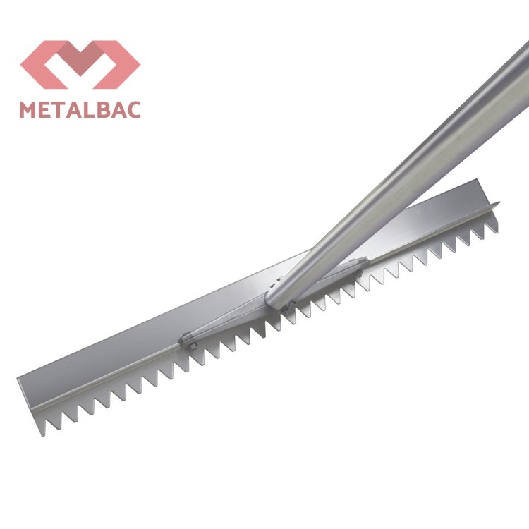 Greblele noastre asfaltice au rezistența și baza este din oțel și totuși sunt cu o treime mai ușoare decât aluminiu. Baza este fixata de mâner cu o turnare grea care creează o conexiune rigidă superioară conexiunilor cu brat mai slab. Are doua margini, una dreapta pentru a finisa suprafetele turnate si una cu "dinti" pentru a permite imprastierea uniforma a materialului. Coada este din fibra de sticla .