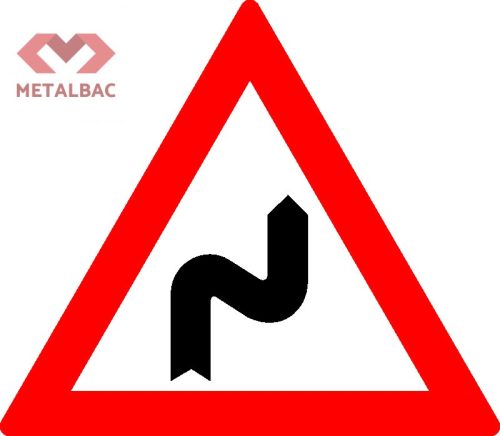 Indicator rutier TRIUNGHI, L=700 mm, din tabla de otel vopsita in camp electrostatic, acoperit cu folie EGP clasa I, 3 M sau Oracal,Indicatorul se instaleaza atunci cand urmeaza o succesiune de curbe, daca distanta dintre acestea e mai mica de 250 m. Se amplaseaza la 100-200 m inaintea primei curbe. Aceste indicatoare pot fi insotite si de panouri aditionale, pe care este specificata distanta pana la terminarea sectorului de drum periculos, daca lungimea acestuia depaseste 1000 m. Canducatorul trebuie sa circule cu viteza redusa in curbe, iar daca vizibilitatea este redusa, toate manevrele (depasirea, oprirea, stationarea, mersul inapoi, intoarcerea) sunt interzise.
