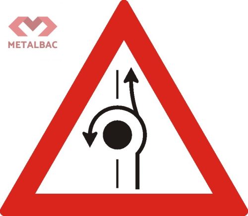 Indicator rutier TRIUNGHI cu L=700 mm, tabla din otel vopsita in camp electrostatic si acoperit cu folie EGP clasa I, producator 3M si Oracal.